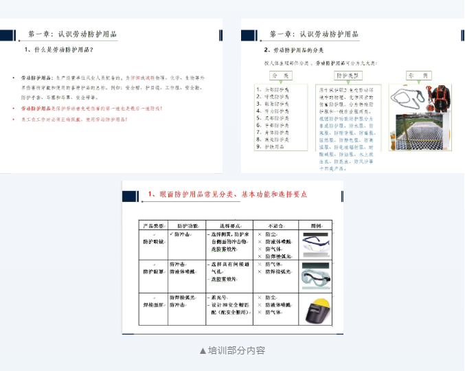 本次培訓(xùn)采用PPT課件的方式授課,結(jié)合生產(chǎn)現(xiàn)場(chǎng)特點(diǎn),從勞動(dòng)防護(hù)用品的類別、作用、使用方法、注意事項(xiàng)等方面介入,形象生動(dòng)地圍繞安全帽、耳塞、防護(hù)手套、安全鞋等常用勞保用品的正確使用方法進(jìn)行講解示范,讓大家更加直觀地學(xué)習(xí)我們工作中常用的各類防護(hù)用品的正確用法,懂得掌握勞動(dòng)防護(hù)用品專業(yè)知識(shí)的重要作用。