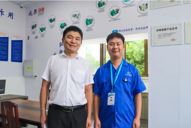 期間調(diào)研組與公司工程師、全國(guó)五一勞動(dòng)獎(jiǎng)?wù)芦@得者邱軍強(qiáng)進(jìn)行交談,參觀了公司勞模創(chuàng)新工作室,對(duì)工作室在深化校企合作方面的作用表示肯定。