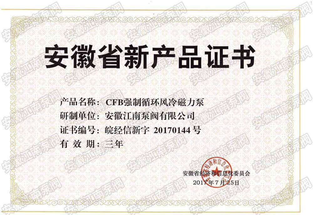 安徽江南泵閥有限公司榮獲CFB強(qiáng)制循環(huán)風(fēng)冷磁力泵新產(chǎn)品證書,主營(yíng):氟塑料泵,不銹鋼泵,耐腐蝕化工泵,品質(zhì)卓越,行業(yè)領(lǐng)跑企業(yè),科研生產(chǎn)型企業(yè)20年鑄就行業(yè)輝煌!...