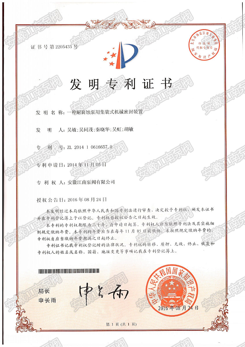 安徽江南泵閥有限公司榮獲氟塑料泵內(nèi)裝式抱死機(jī)械密封專利,主營(yíng):氟塑料泵,不銹鋼泵,耐腐蝕化工泵,品質(zhì)卓越,行業(yè)領(lǐng)跑企業(yè),科研生產(chǎn)型企業(yè)20年鑄就行業(yè)輝煌!...