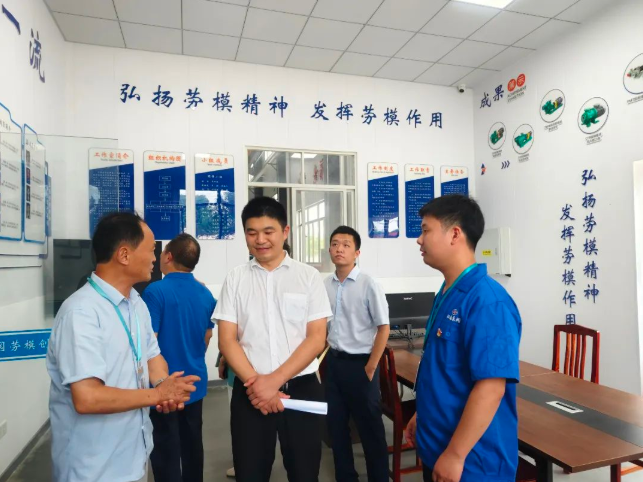 期間調(diào)研組與公司工程師、全國(guó)五一勞動(dòng)獎(jiǎng)?wù)芦@得者邱軍強(qiáng)進(jìn)行交談,參觀了公司勞模創(chuàng)新工作室,對(duì)工作室在深化校企合作方面的作用表示肯定。